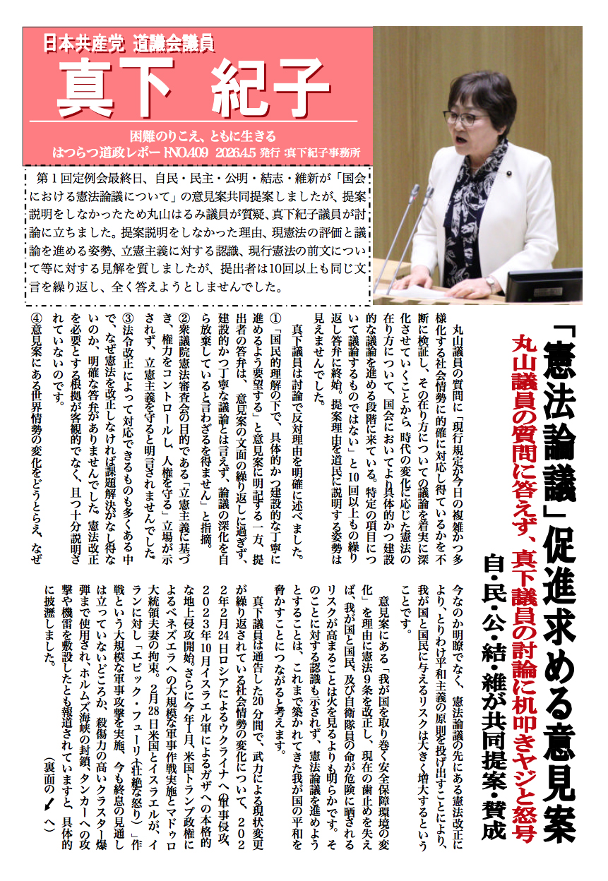 2026年4月5日 はつらつ道政レポート409号